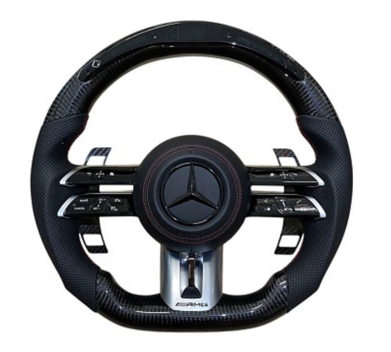 Build your own dream custom AMG steering wheel. Experience motorsport-inspired design with our flat-bottom carbon fiber wheels, crafted for performance and style. Featuring a bold 12 o’clock stripe for perfect hand positioning, enhanced grip options, and customizable finishes — each wheel delivers unmatched comfort, control, and driving confidence whether you're pushing limits on the road or cruising daily. Luxury, precision, and personalization — made for true AMG enthusiasts.